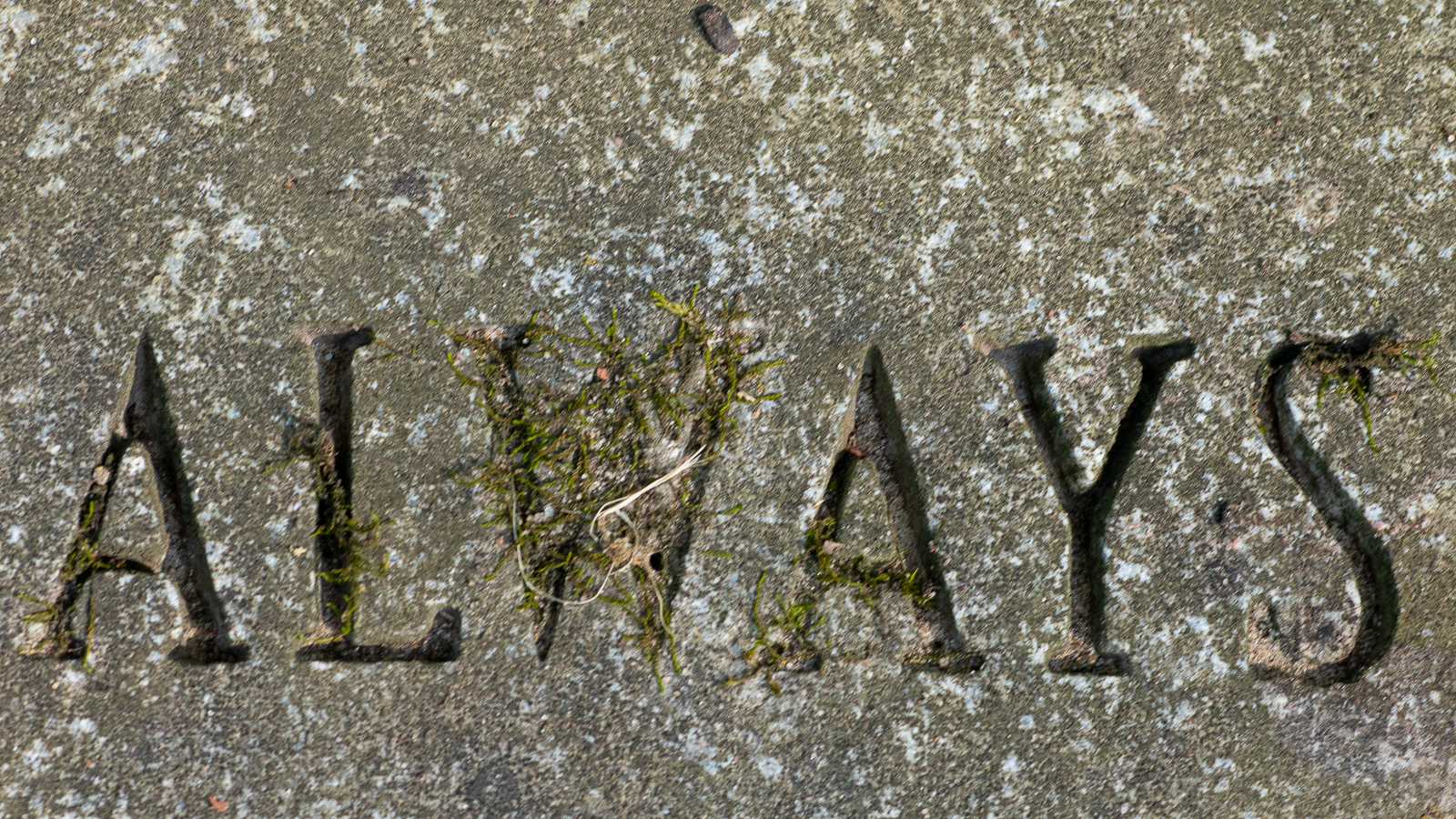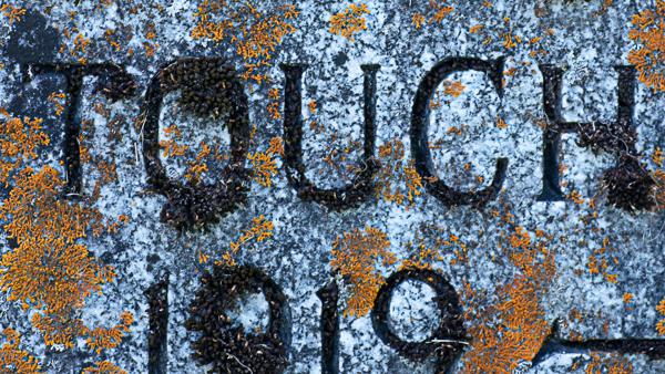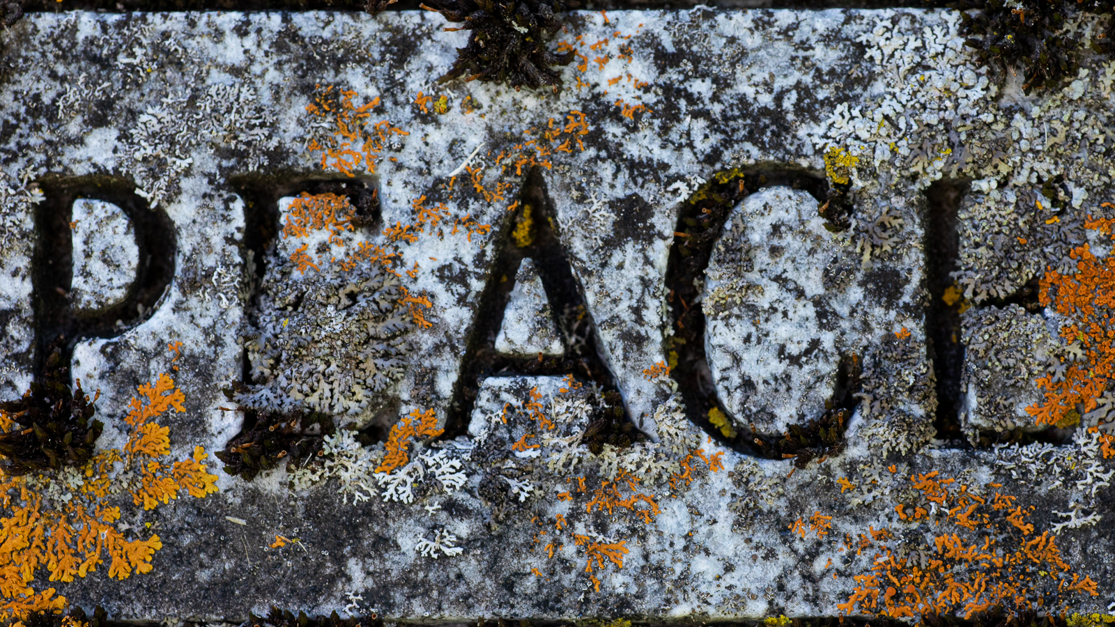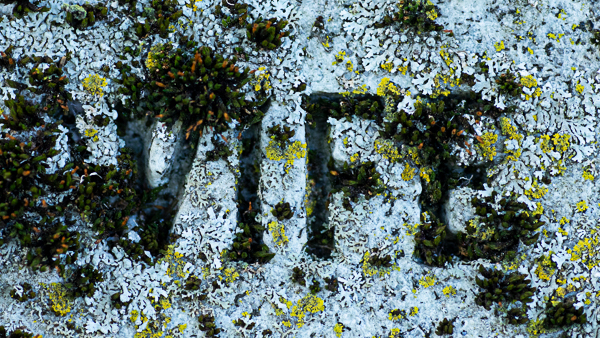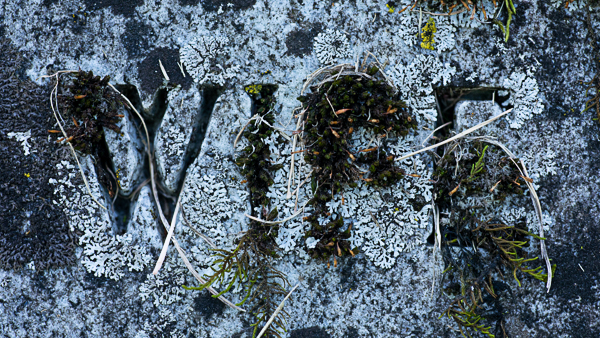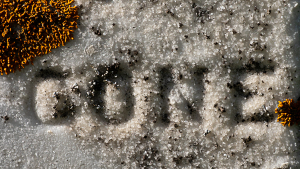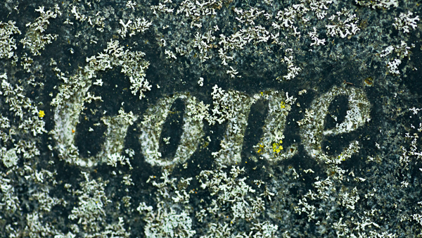 and what of the stone engraved with the epitaph? we carve our message, nod our heads in congratulation and are gone, while they wear the words of our histories for generations. the stonework cracks, lichen grows and spreads, a bee rests inside the letter ‘a’ while a deer nibbles the weeds that spring forth around edges of the broken granite slab. the letters blend and finally blur until message and meaning are lost. nature takes our words and holds them, keepers of the text, maintaining a silent vigil as the wind and rain gradually erase the scars of humans and our desperate need to be remembered. no other animal does this.